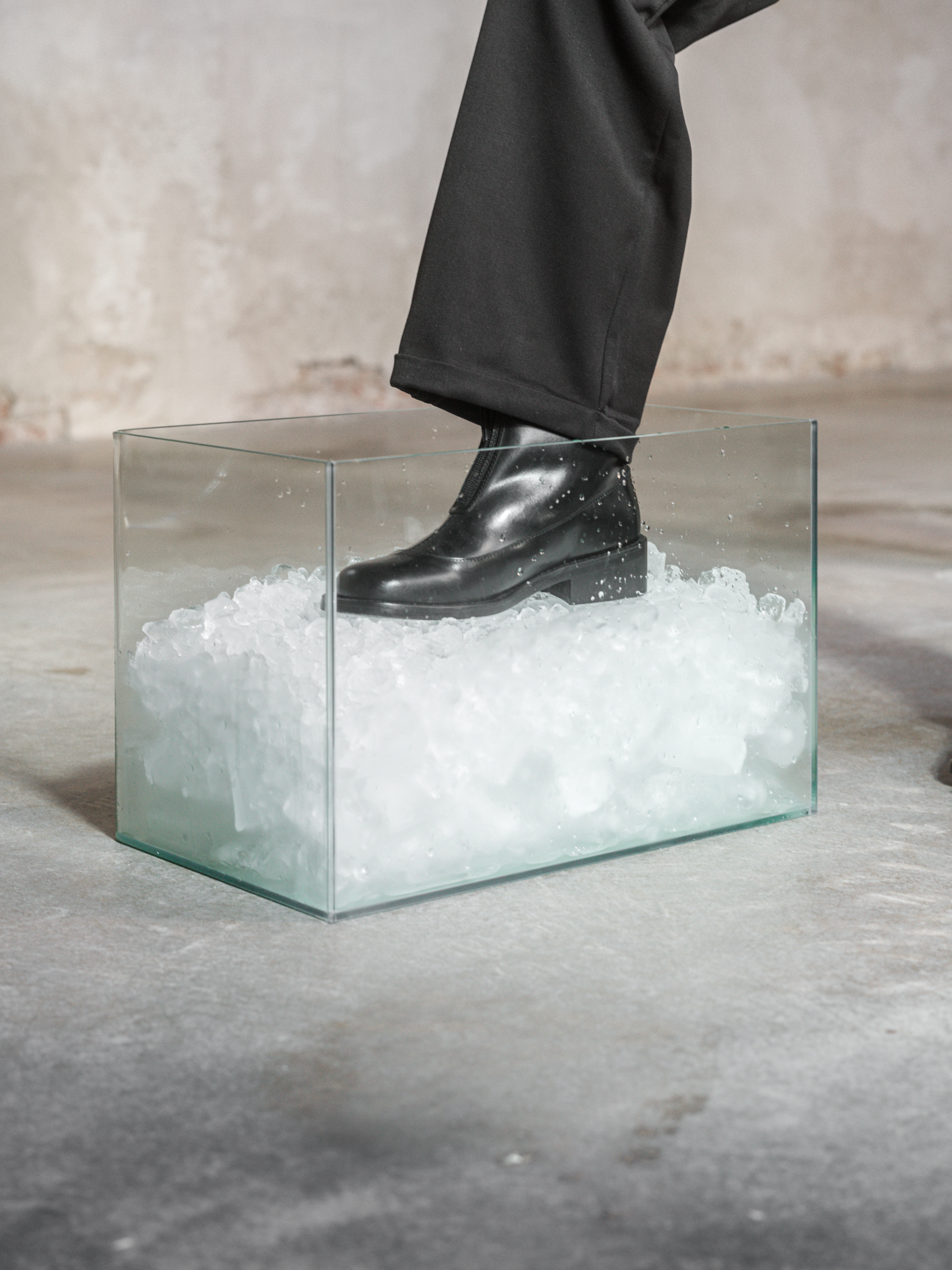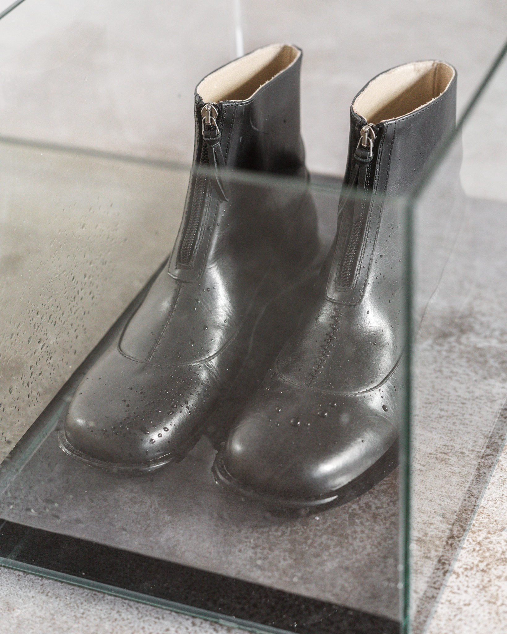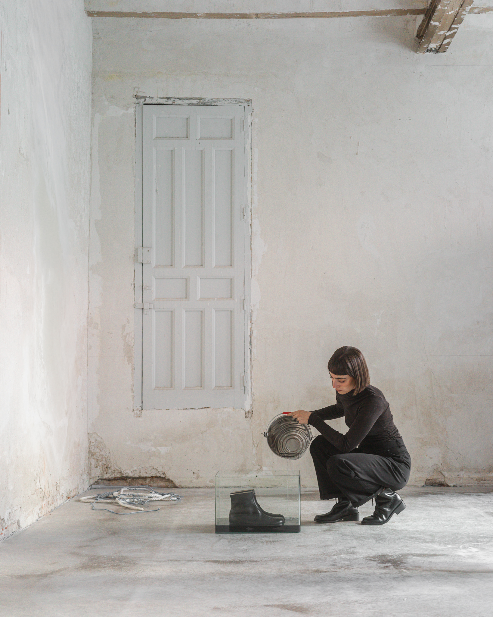 Esta mirada se refleja también en Coastal Line, la propuesta visual que acompaña la colección y que, al igual que la tienda, parte de la arquitectura para construir un relato. Paracia trabajó en un estudio aún en construcción, donde las paredes sin terminar y las texturas crudas evocaban la atmósfera del puerto y la erosión del mar y del tiempo. En ese entorno, objetos cotidianos como redes, maderas o cuerdas se integraron de manera casi imperceptible, sugiriendo la presencia del paisaje que dio origen al diseño. Su disposición crea una conexión discreta entre el entorno y la bota: un recordatorio de dónde comenzó la forma y cómo ahora ha cambiado de contexto.