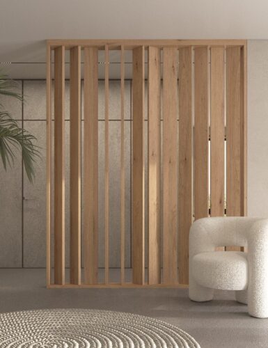 Una solución sin obras ideal para conectar o separar ambientes -se pueden instalar en todo tipo de espacios: baños, dormitorios, vestidores, salones, cocinas…- sin tabiques, manteniendo la luz y aportando dinamismo al espacio, todo con un simple gesto. - Paneles de suelo a techo para la zona de TV