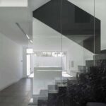 En este diseño cobró un mayor protagonismo dos tonalidades, el negro y el blanco. El primero tiene un impacto mayor, ya que queda materializado a lo largo de toda la escalera interior. Para las huellas se ha elegido un mármol natural negro Marquina y la barandilla ha sido construida mediante una chapa de acero lacado en negro.