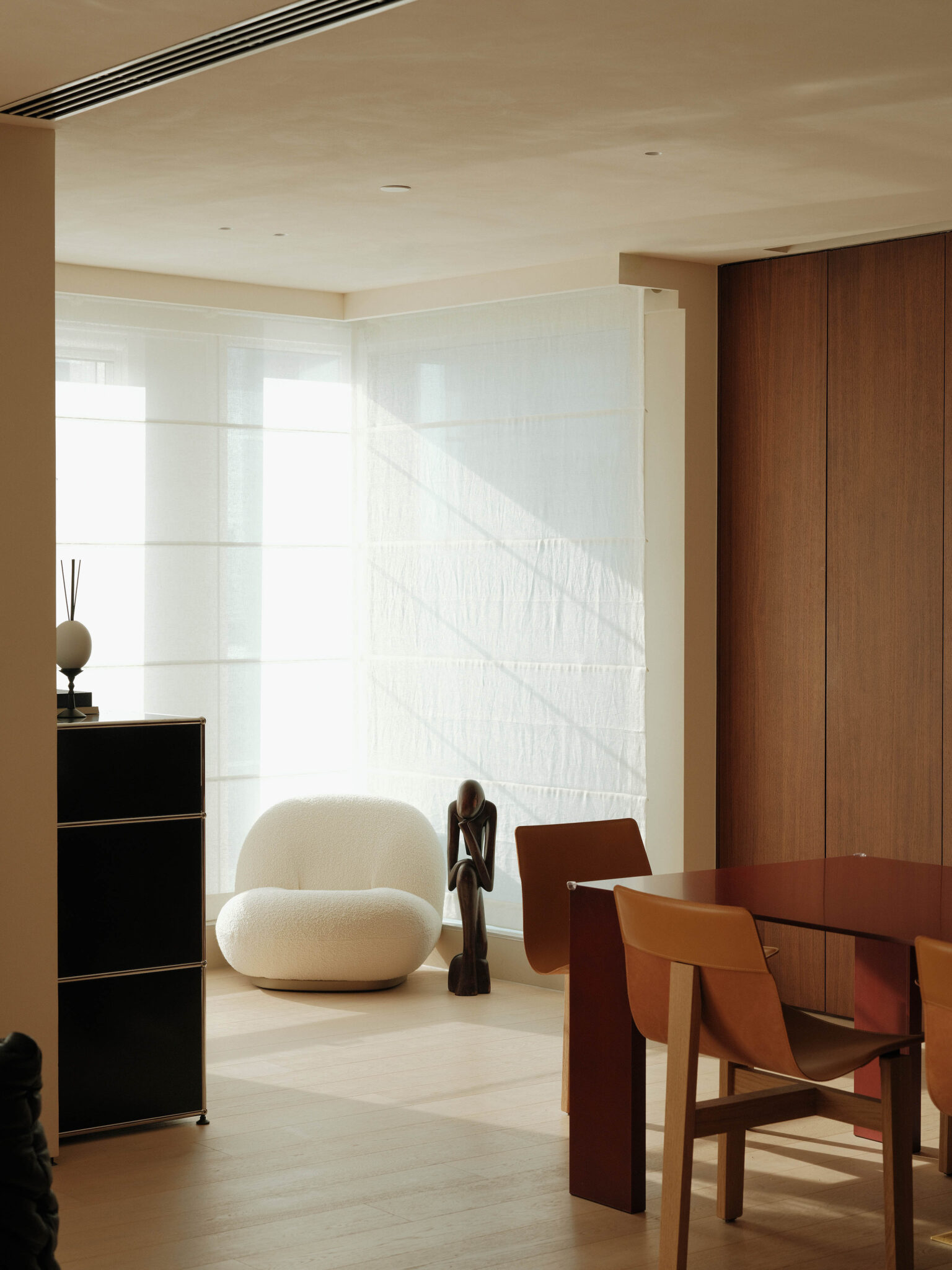Un verdadero hogar no es simplemente un contenedor de paz y confort, sino un recipiente de vitalidad, donde los detalles de la vida diaria y el pulso de la ciudad coexisten naturalmente en un mismo campo.”