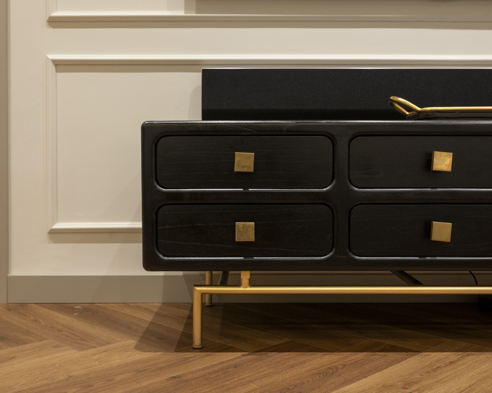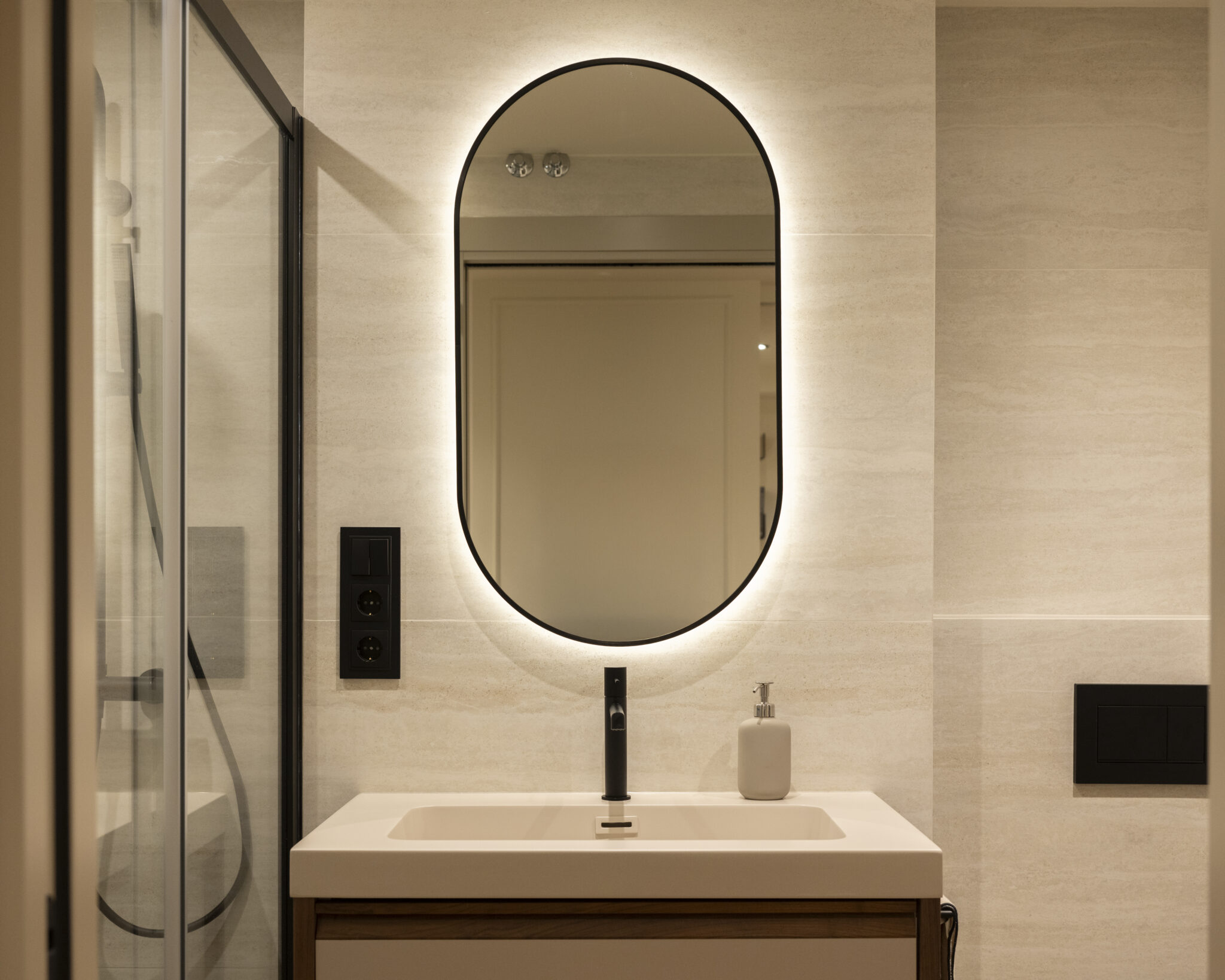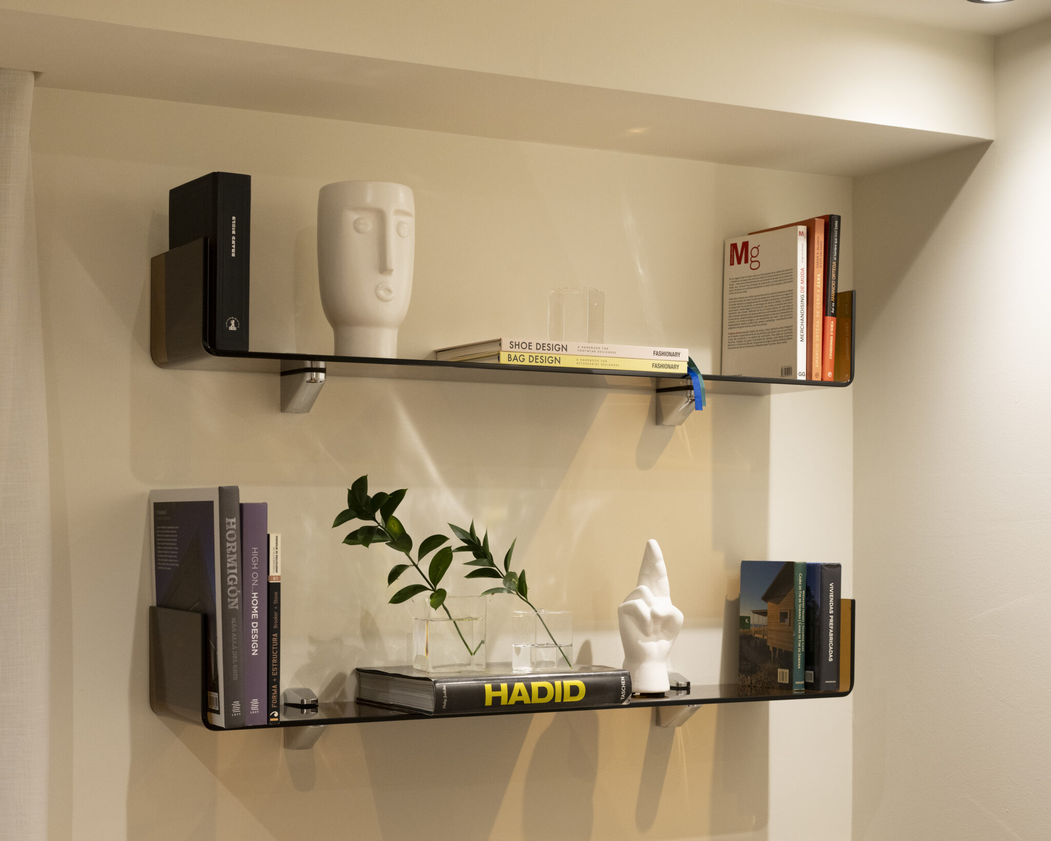 El nuevo programa incluye dos dormitorios, dos baños (uno en suite), vestidor y un despacho que se integra con discreción y elegancia al espacio común, gracias a un escritorio de cristal que aporta ligereza sin perder presencia. La vivienda ahora fluye, se adapta y seduce. Es un hogar pensado para vivirlo intensamente, sin renunciar al diseño.