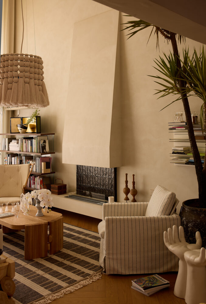 Sofás bajos, butacas de descanso y mesas de pequeño formato trazan un orden informal: sin jerarquía, sin un centro fijo.