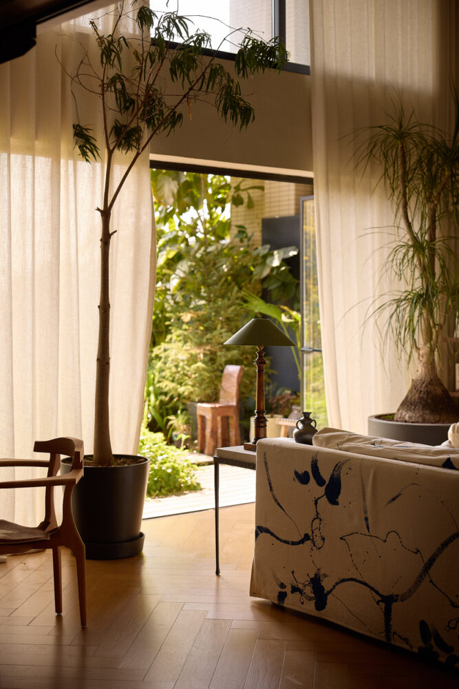 Los objetos, los textiles, la luz y el jardín aparecen como si hubieran crecido de manera natural desde el espacio. Cuando dejan de ser necesarios, se repliegan en silencio y regresan a un continuum natural más amplio, alimentándose de su ritmo, su temporalidad y su espíritu.