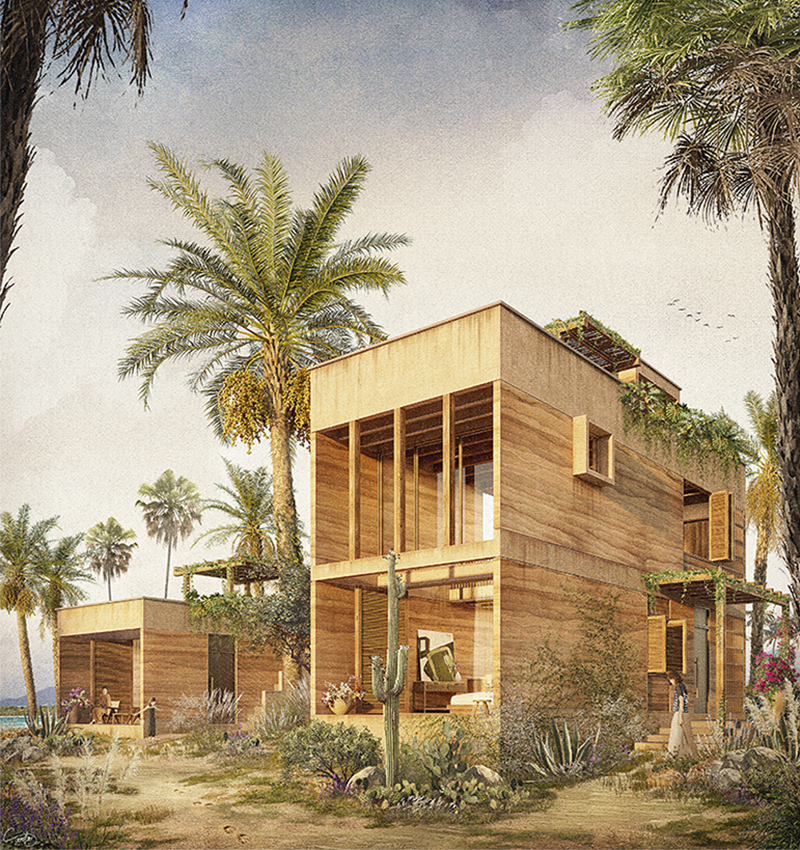 La paleta cromática, inspirada en la península de Baja California Sur, retoma tonos cálidos y terrosos que evocan el paisaje árido, la intensidad de la luz y la esencia del desierto costero. Cada decisión de diseño refuerza un sentido de pertenencia, creando una composición que parece haber formado siempre parte del paisaje. Villa Desierto no es simplemente un complejo arquitectónico; es un refugio que celebra la identidad de su lugar: una propuesta que transforma el habitar en una experiencia sensorial, auténtica y profundamente conectada con la naturaleza.