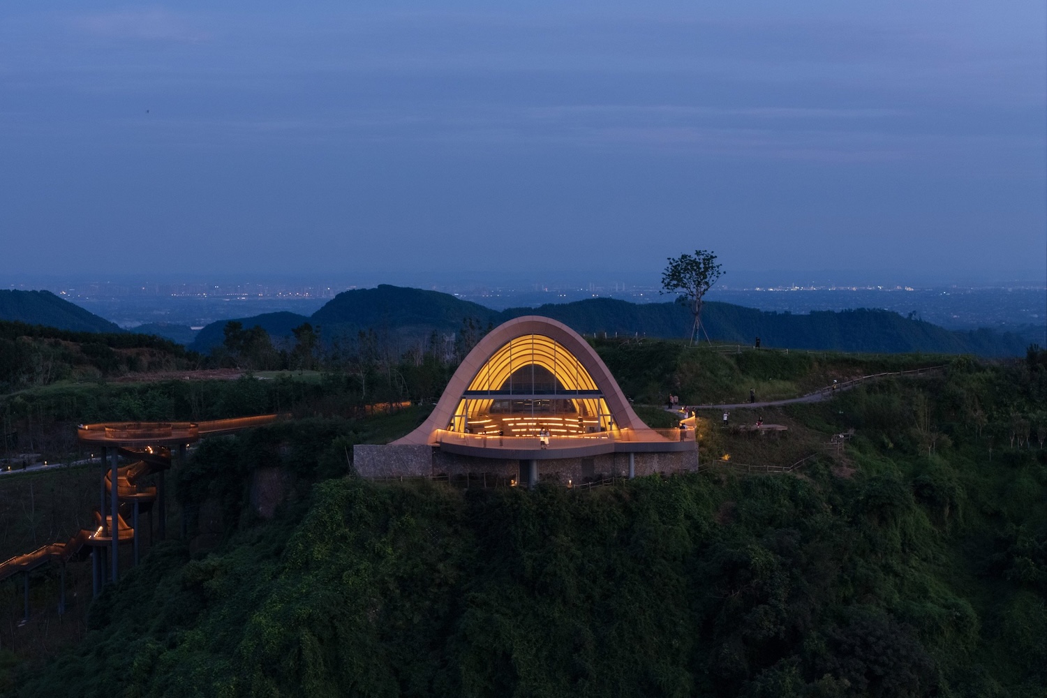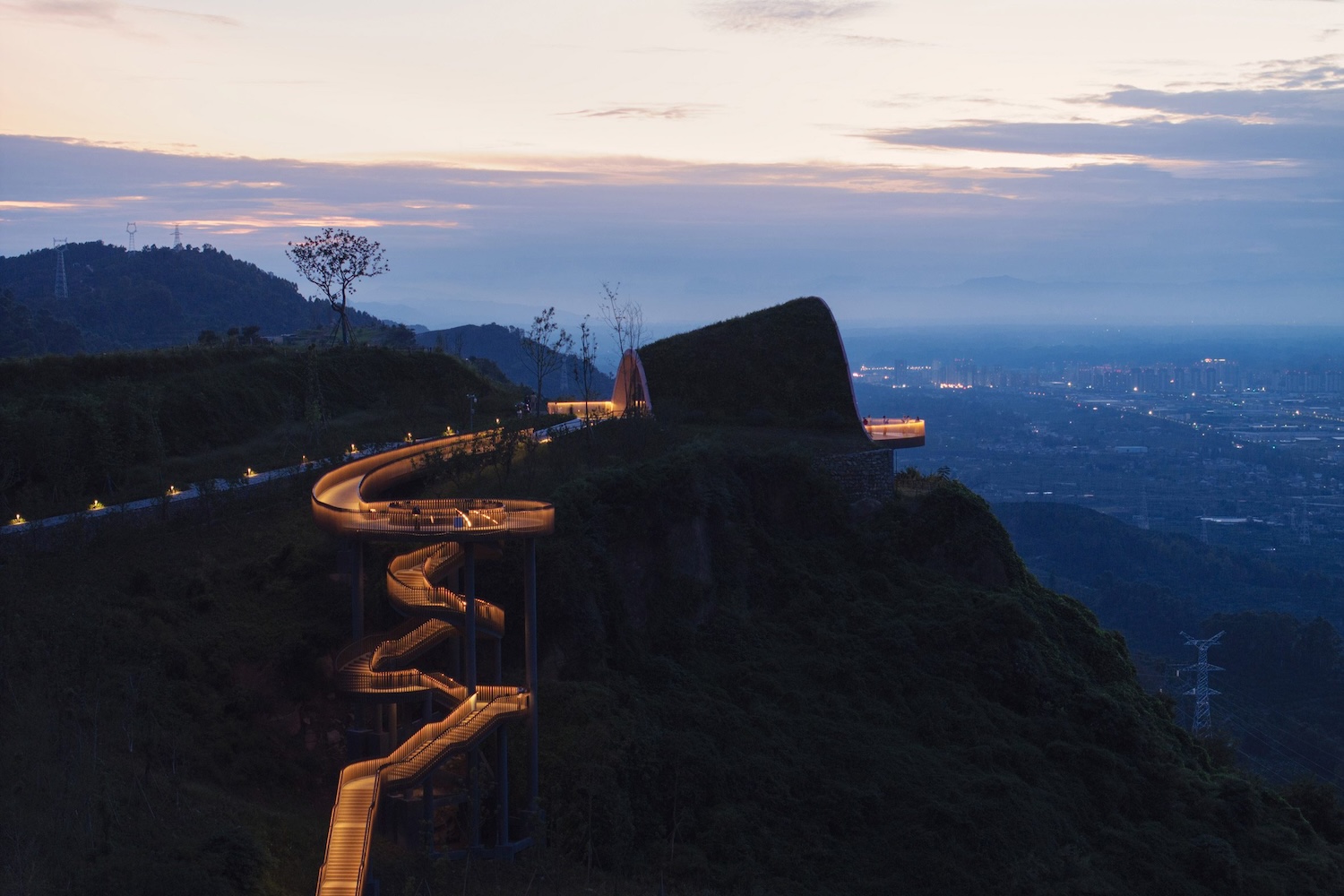 La reciente pieza del estudio holandés ha nacido para actualizar un enclave al suroeste de Chengdu: una colina prominente que pasó a ser una llanura mirador con forma de plataforma rígida sobre el terreno. Esta operación topográfica sensible —capaz de transformar aquella primera propuesta en una nueva estructura recogida por el entorno— abraza al visitante para hacerle testigo del progreso arquitectónico de la urbe. En este proyecto, mirar se concibe también como un modo de generar comunidad.