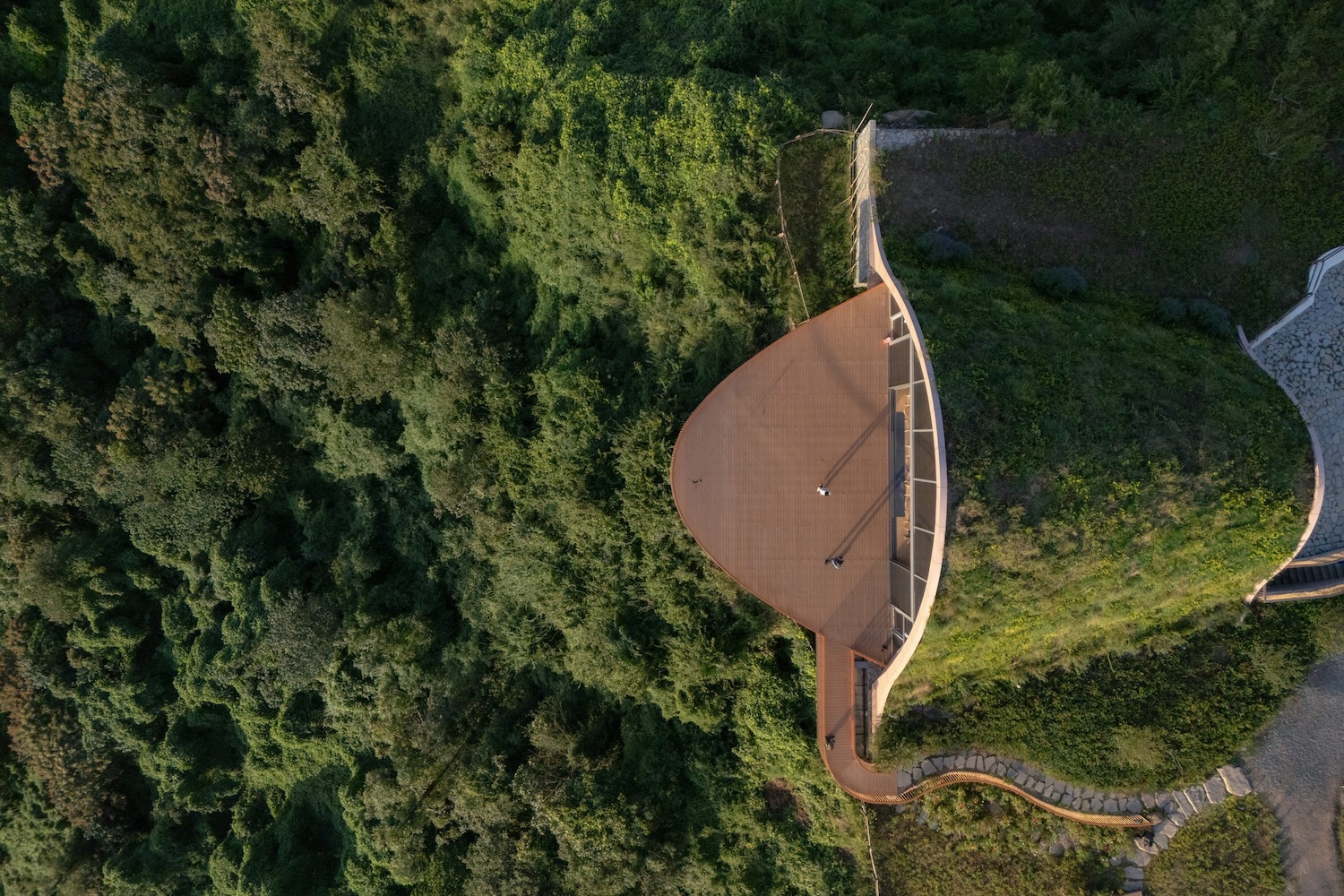 MVRDV ha reescrito el relieve del lugar y lo ha dispuesto de manera similar a un balcón: un pequeño salón desde el que contemplar la ciudad que crece entre la cadena montañosa que lo contiene. En esta misma idea resuena la lógica de otros pequeños teatros paisajísticos contemporáneos, donde el horizonte sirve casi como escenario compartido. Pujiang Platform se asienta para actuar como un punto donde sea posible experimentar la sensibilidad del área colindante, mientras se pone en valor su importancia y las estrategias que se fomentan para su construcción, protección y proliferación.