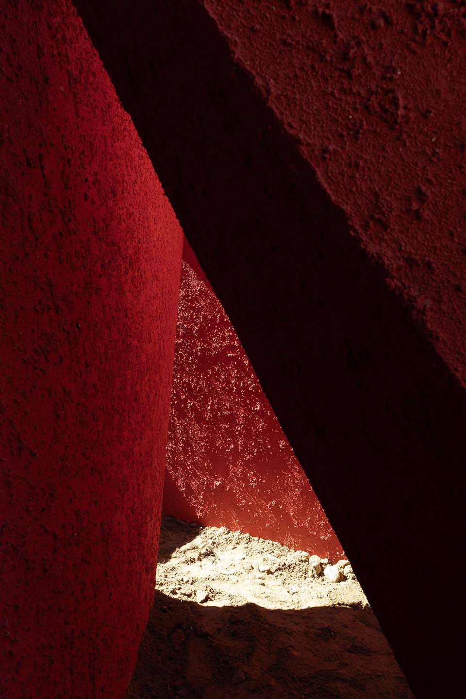 Las intervenciones de este creador se sitúan en parajes vírgenes o apenas alterados, lo que genera en el visitante una experiencia íntima y emocional. Podemos apreciarlo tanto en Shrine of Triskele como en Serpent Lady. En ambas, la estructura responde a un patrón común: partes escarbadas que se hunden en la tierra, mientras otras se elevan en un juego de líneas y planos afilados. Quien observa se enfrenta así a un baile de formas, ángulos y contrastes, donde la tierra y el cielo se cortan mutuamente, alterando la percepción del paisaje. El paso del tiempo es un componente esencial en todo proceso creativo. Por ello, la elección de los materiales —hormigón, tierra, piedras— depende siempre de las condiciones ambientales del lugar.
