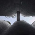 Y en un piso intermedio entre lo humano y el cielo, coronando las cubiertas de estas exclamaciones de hormigón, 10 árboles forman un jardín transitable, como un símbolo del libro que fue naturaleza y que se alimenta de esa luz a la que aspira, buscando cerrar el círculo de este lugar de ensueño.