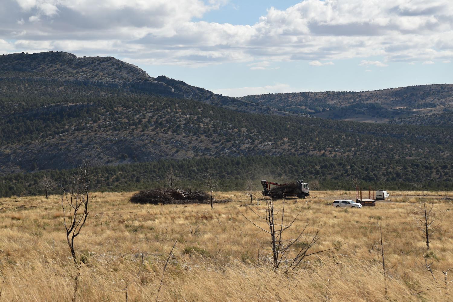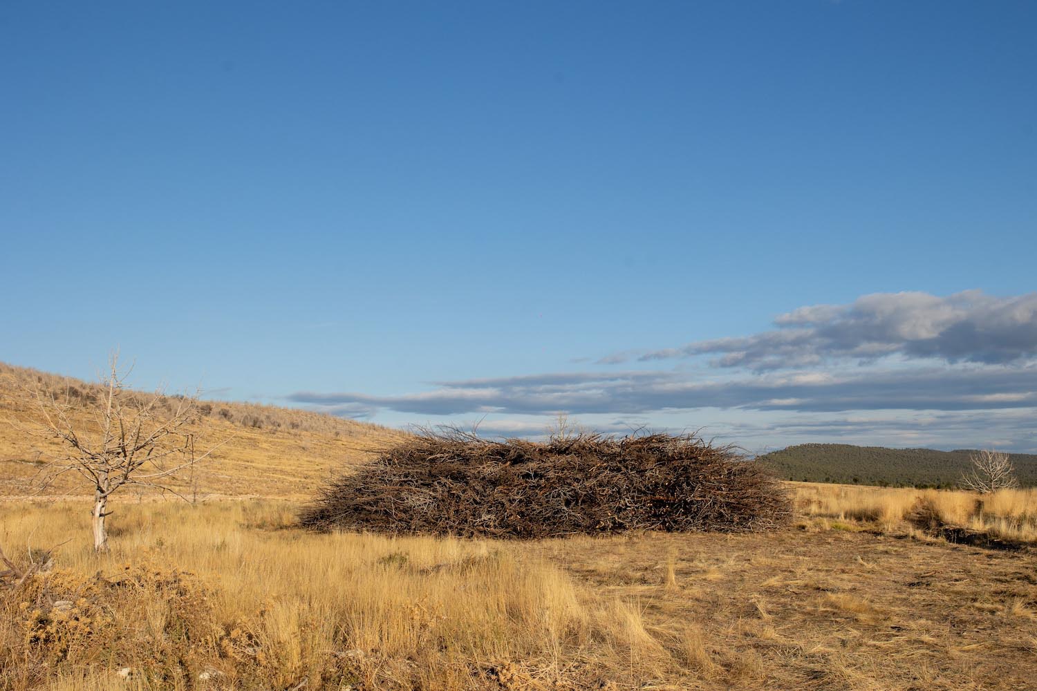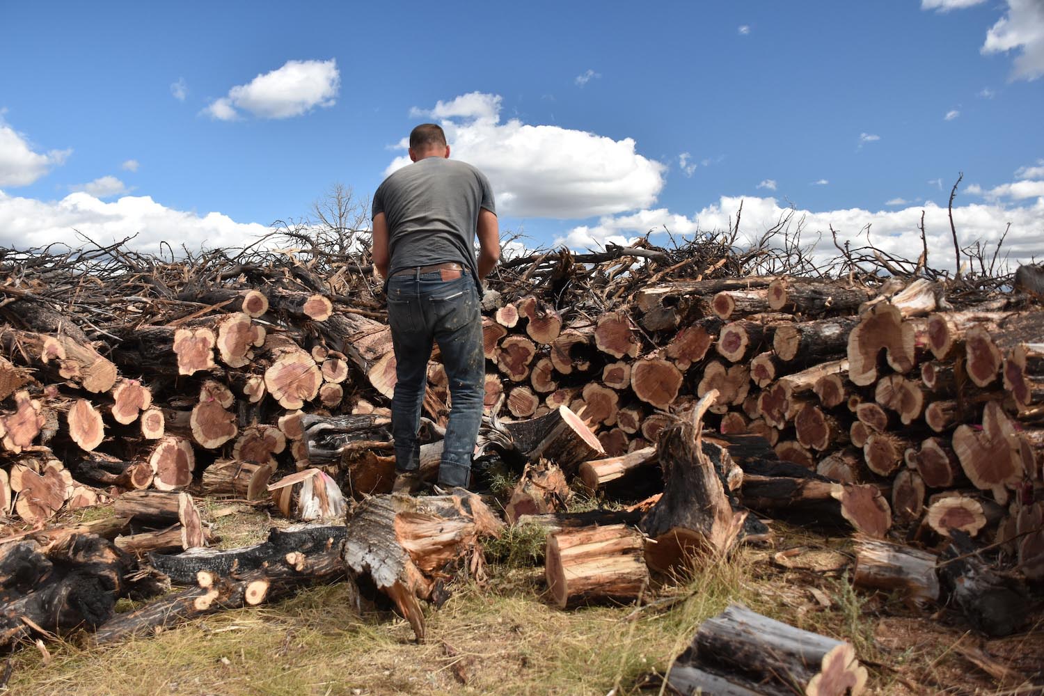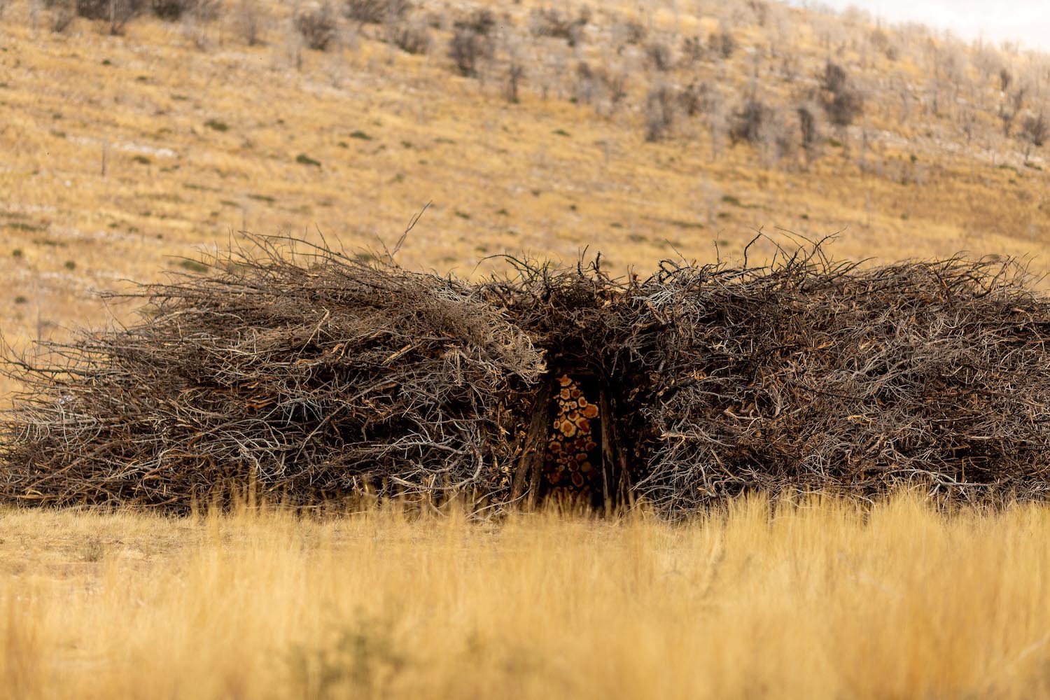 En 2022, tuvo lugar en el Parque Natural Sabinares de Arlanza – La Yecla uno de esos fuegos rurales que arrasó una vasta extensión de territorio. Pero para no olvidar que de la tragedia llega el renacimiento, el estudio artístico creó Socarrado: una estructura circular erigida íntegramente con troncos de enebro que fueron recuperados tras el incendio, siendo el músculo humano los vecinos, los voluntarios, comerciantes locales y otros colaboradores. Todos ellos fueron parte indispensable para la recolección y el montaje posterior.