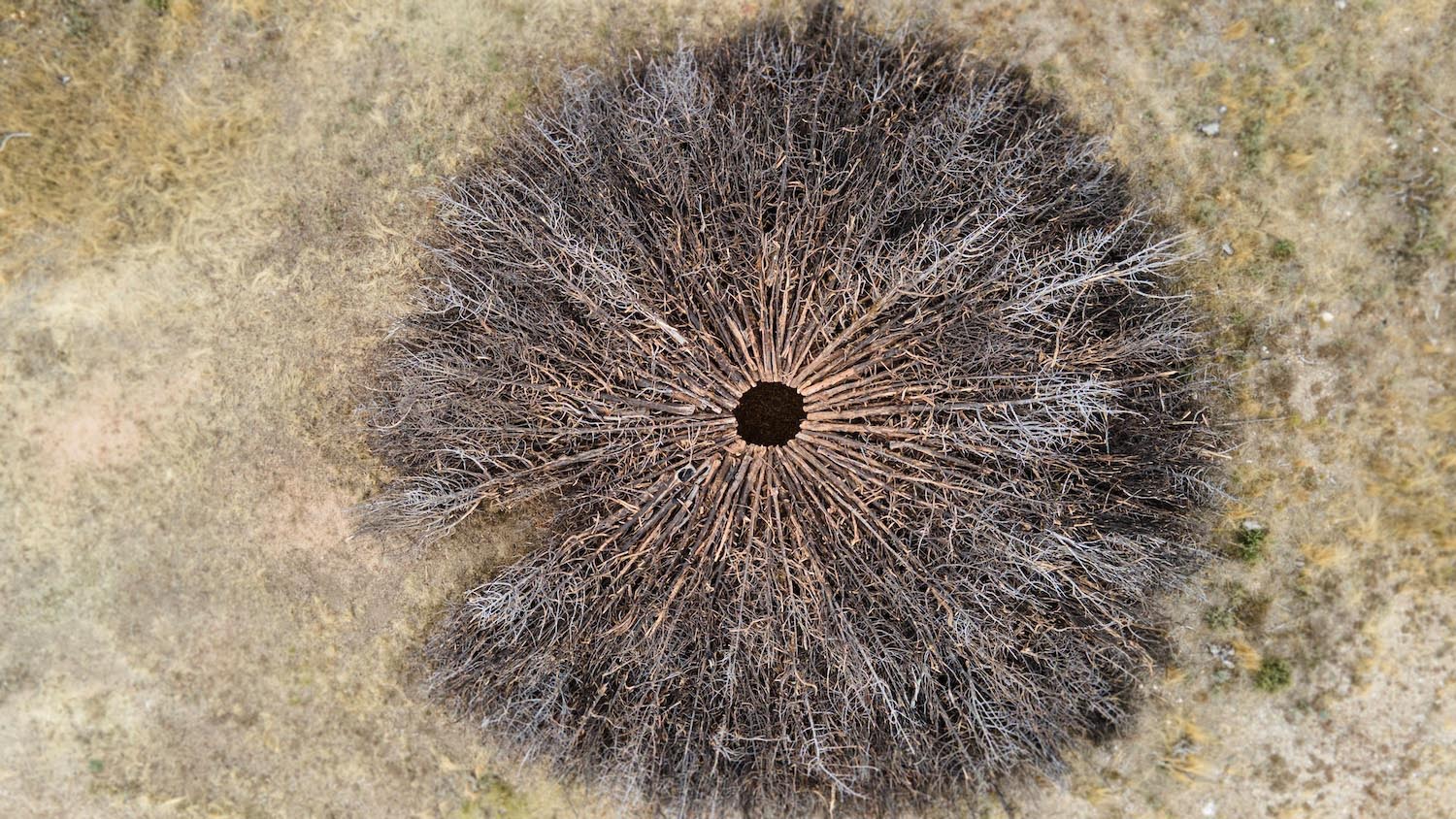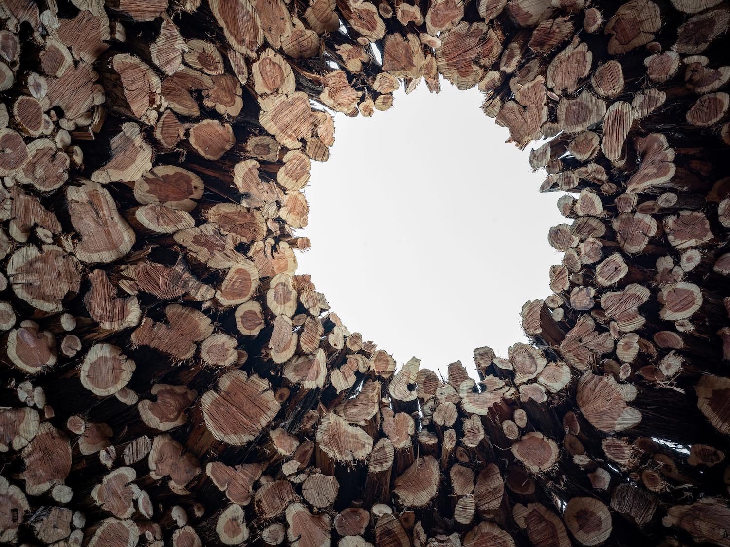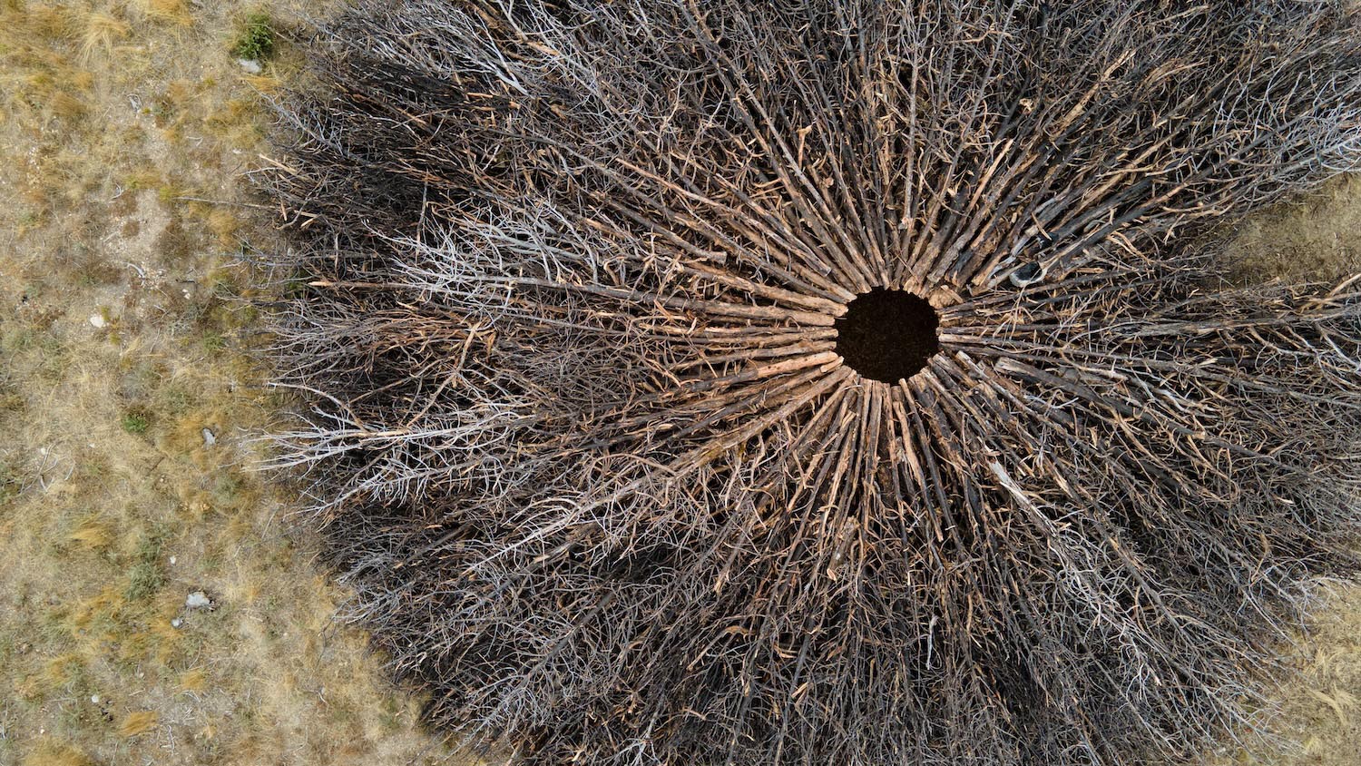 Nomad Studio ha erigido Socarrado en mitad del Parque Natural Sabinares de Arlanza – La Yecla, en la provincia de Burgos; una instalación compuesta por troncos supervivientes del fuego, colocados concéntricamente y con la que buscan que no se olvide jamás el impacto medioambiental de los incendios rurales.