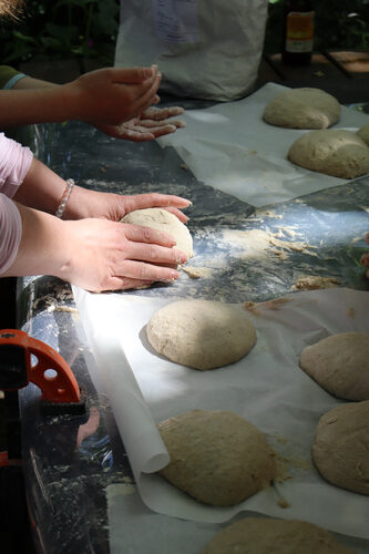 En sus talleres, Studio CoPain promueve la manifestación artística en un entorno low-tech. Se trabaja con las manos: se amasa el trigo fermentado con esfuerzo, todos juntos. Esa fisicidad, combinada con las opciones creativas del material, acerca su práctica al territorio de la artesanía. Pero en su caso, las obras resultantes son comestibles. Una vez salen del horno llega la puesta en común y, con ella, la celebración: el banquete. Son acciones sencillas, casi obvias, que hace no tanto tiempo eran parte de la cotidianidad y que, por eso mismo, nos parecen familiares incluso si ya casi no las practicamos. Con ello, Studio CoPain pone en práctica una manera fácil de construir comunidad, devolviendo el protagonismo a algo que siempre estuvo en la base de la vida común: una mesa compartida y un trozo de pan recién horneado.
