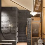 Cabe destacar que el establecimiento de la marca canadiense cuenta con gabinetes personalizados y móviles para ajustar el patrón espacial según las condiciones de luz y generar escenas cambiantes y flexibles. A diferencia de la mayoría de las arquitecturas retail —en su búsqueda de maximizar las ventas—, Arc’teryx elige no destinar más de un tercio a las ventas, con la esperanza de dejar más sitio a la experimentación de su filosofía. Es así como la compañía dedica este lugar a la función multiusos, centrada en la interacción entre personas y artículos con una máxima prioridad: la concepción de su interiorismo.