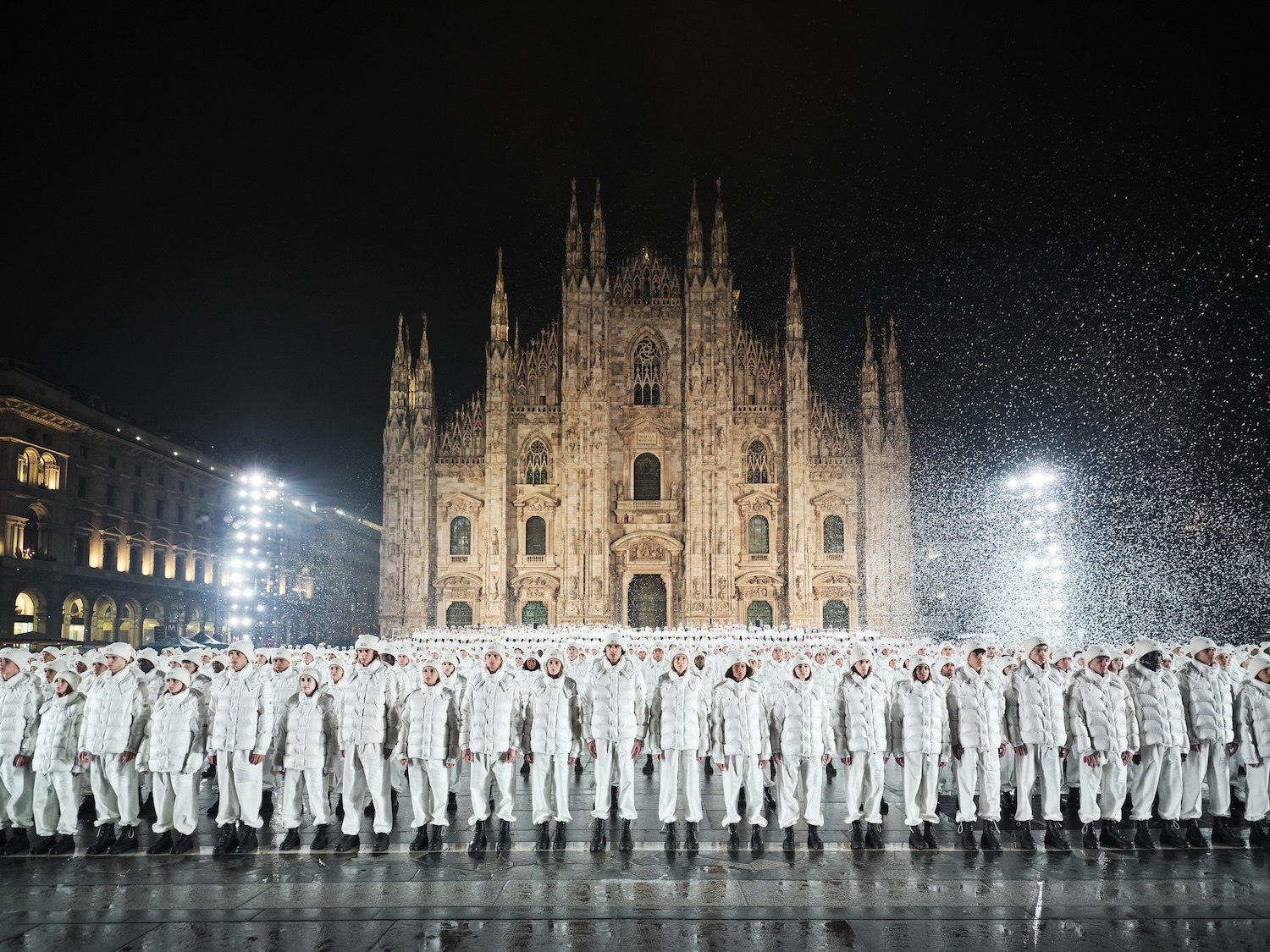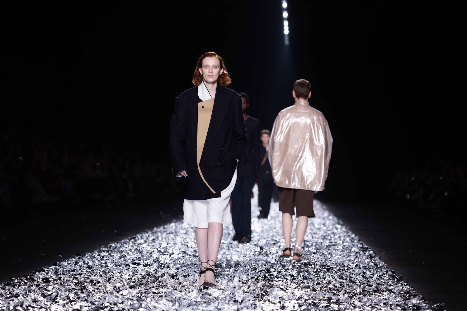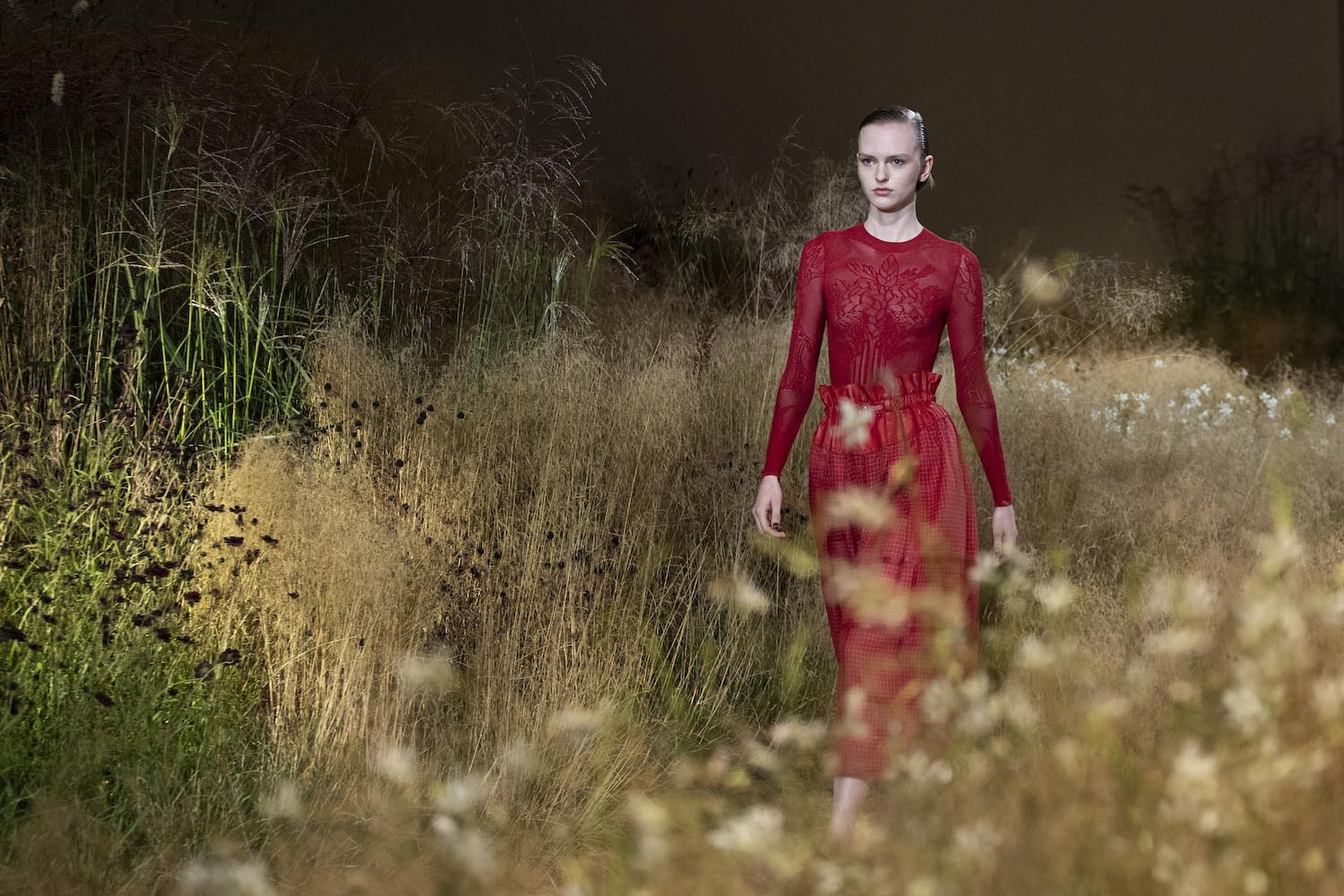 La misma que se produjo en el AW25 de Ferragamo —una conmoción intensa de color rojo— y de Moncler en la nieve de Courchevel —de color azul esta vez—, o aquella que tuvo lugar en postales tan visitadas como el Pount Neuf de París o la Piazza del Duomo de Milán, transformadas y convertidas en algo totalmente nuevo con la fuerza de una marea humana a modo de escenografía —SS24 de Louis Vuitton y SS23 de Moncler—. La creatividad de Russo nos convence de que un campo silvestre puede nacer en el interior de un desfile —SS25 de Boss— con la misma sorpresa con la que emana una forma desconocida y misteriosa junto al front row —dentro del SS23 de Hermès—. Incluso, yendo aún más lejos, nos demuestra que no es necesario recurrir a los fuegos artificiales para ofrecer algo significativo y sublime. ¿Nuestro favorito? Su último desfile para la colección SS25 de Dries Van Noten donde queda evidenciado que para Villa Eugénie solo hace falta una cosa: la esencia más honesta y radical.