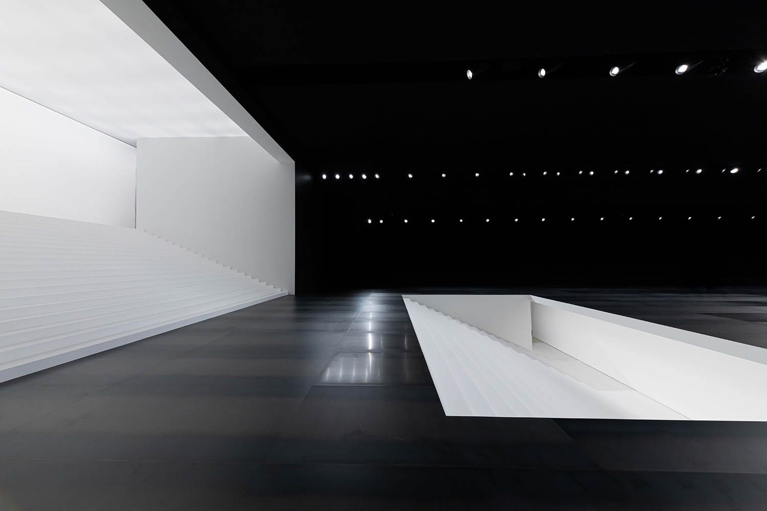 Hoy, Villa Eugénie se caracteriza por crear escenificaciones poderosas. Del elogio de la curva —incluso en contextos eminentemente clásicos como el desfile Haute Couture SS25 de Schiaparelli— al minimalismo radical —blanco sobre negro en dos arquitecturas de extrema sencillez— en AW25 de Dior Men. Visual, conceptual, rompedor, teatral, sensorial, poético… La lista de adjetivos que construyen el sello personal de Villa Eugénie es interminable. Su capacidad camaleónica hace de esta agencia una de las más transversales del negocio. A ello se suma el talento visual, sonoro y lumínico para descubrir narrativas que amplifican la visión de los clientes. ¿El mayor atractivo de Russo y su estudio? Trascender la realidad del diseño mirando hacia otras manifestaciones humanas.