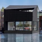 La casa flotante diseñada por i29 Architects se encuentra en Schoonschip, una villa erigida sobre uno de los canales en desuso de Ámsterdam donde se ha creado la mayor comunidad sostenible de Europa. El ser humano, tras haber conquistado la tierra y los cielos, se lanza al agua para hacer de la eficiencia energética su bandera y habitar una antigua zona industrial hoy convertida en un hito arquitectónico.