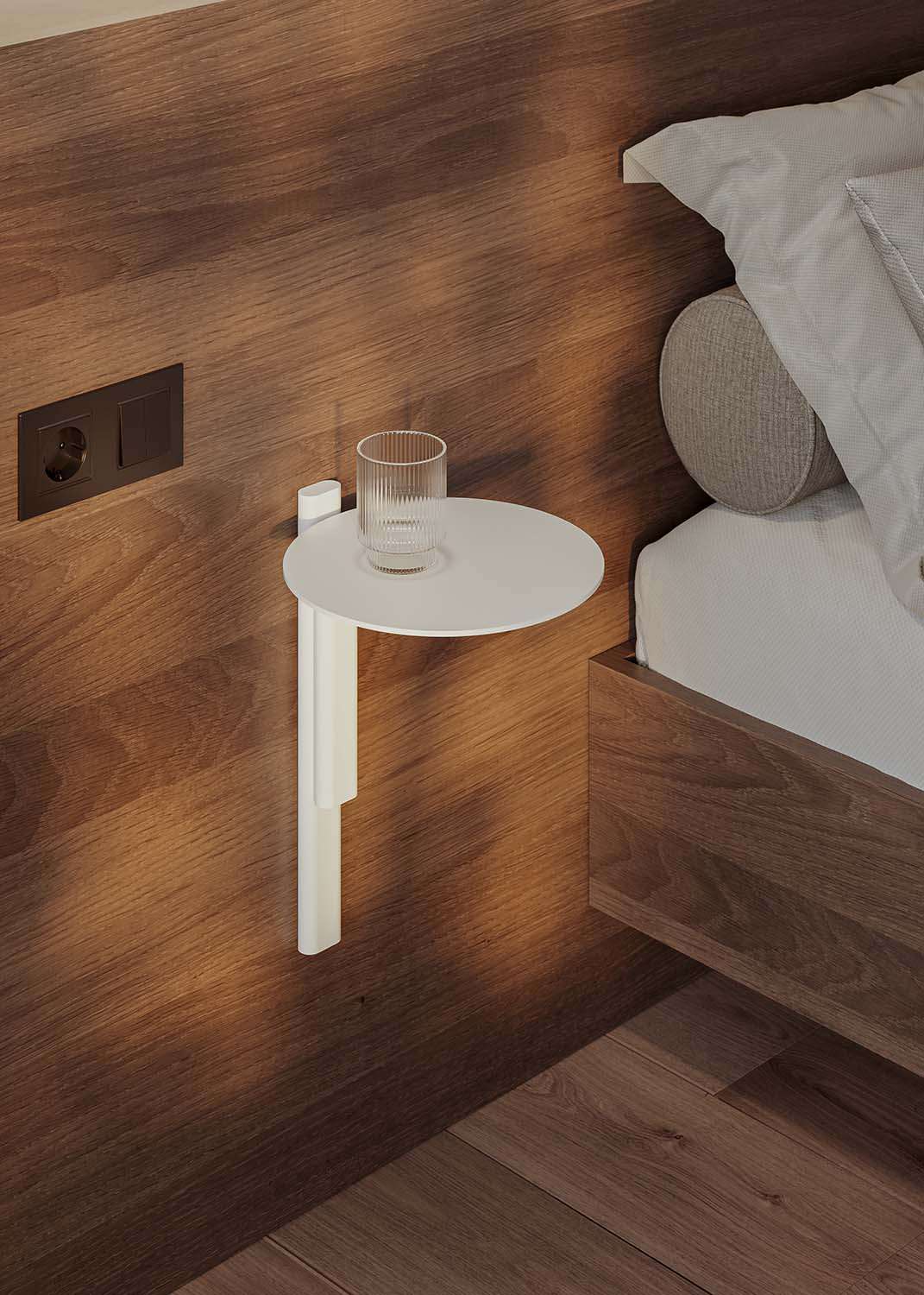 ¿Una mesa auxiliar o una superficie sobre la que apoyar el cansancio antes de acostarnos? Sente es una estantería que parece surgir natural del muro en que se apoya, como una rama metálica que, en lugar del fruto, sostiene nuestros objetos. Nacida del imaginario de la joven Ana Motta para Omelette Editions, transmite una discreta sencillez geométrica en la planicie de su base. Una pieza minimalista que funciona en cualquier estancia sin buscar un protagonismo exclusivo por sus contornos rupturistas o amplias dimensiones, porque la elegancia de su fisionomía flotante ya la hace brillar por sí misma.