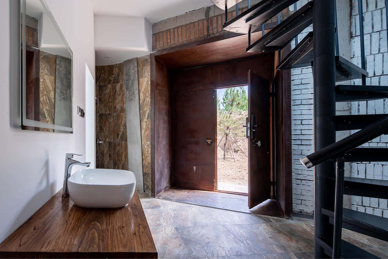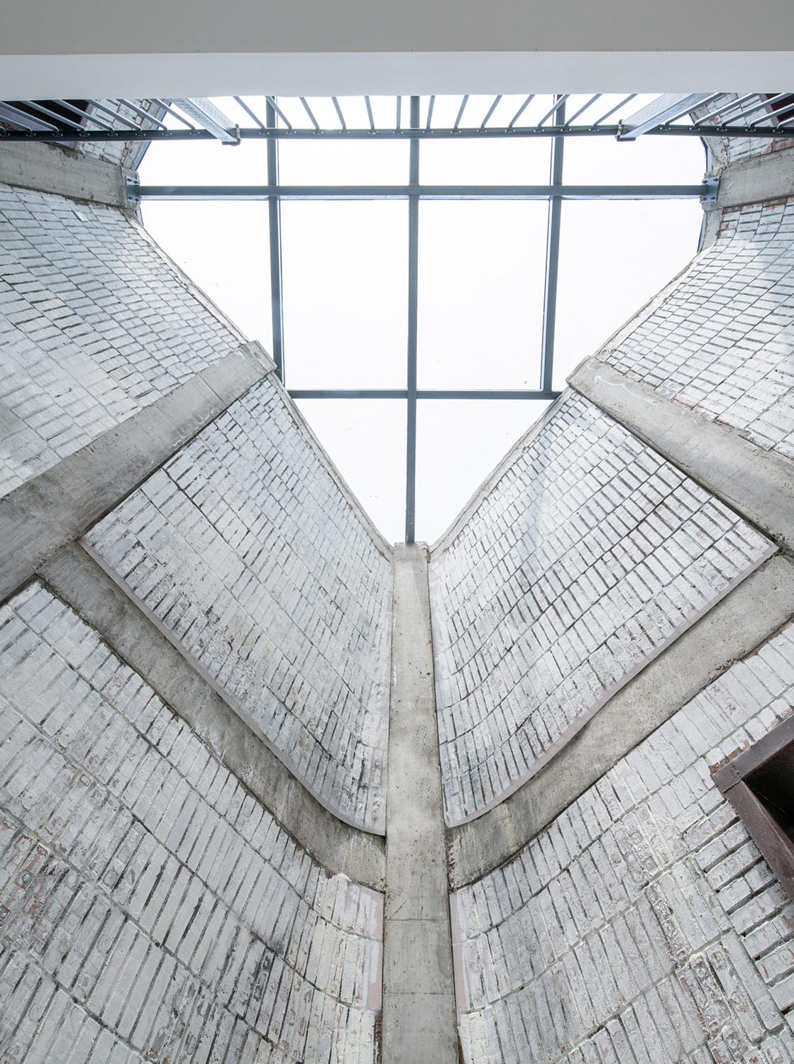 Studio Avoid utiliza el concepto de cueva vertical, un refugio excavado hacia abajo en el terreno para posibilitar encender un fuego que culturalmente ha evolucionado hasta situarse sobre la rasante.