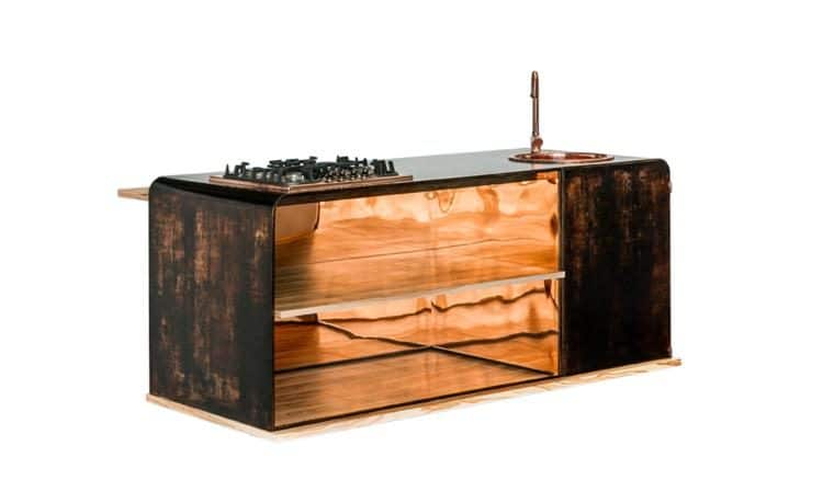 Según el estudio: “La cocina presenta un exterior con un acero en una acabado basto y tratado específicamente, que contrasta con un interior en cobre brillante abierto y visible en su parte frontal. Este contraste responde a la idea de ‘cueva’: un exterior rocoso y un interior suave y sinuoso que se observa en las casas de Matera.”
