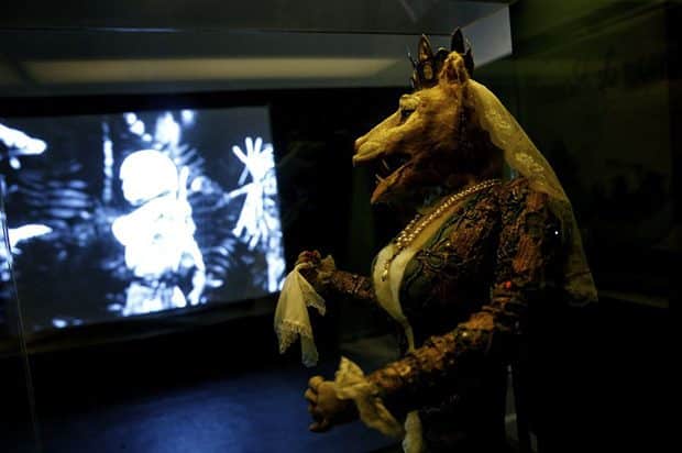 Maquinarias imposibles, personajes hibridados, estudios naturales, objetos cotidianos, un fragmento de una pintura de El Bosco, ilustraciones de cuentos clásicos, un bebé árbol, templos y dioses, el infierno, la infancia, Archimboldo, clases de anatomía, Ensor Munch, Alicia (de Lewis Carroll). Éste, o cualquier otro, puede ser el extracto visual con el que el espectador abandone la muestra. Y es que Metamorfosis no es sólo una exposición sobre animación. Durante el recorrido no hay una sucesión de videos ordenados bajo criterios cronológicos, ni siquiera un circuito preestablecido, aunque sí tres espacios claramente definidos; de haber rótulos temáticos anunciando cada uno de ellos podrían titularse del siguiente modo: Taxidermias animadas de Ladislas Starewitch, El gabinete de curiosidades de Jan Ŝvankmajer o Herramientas de subversión de los Hermanos Quay.