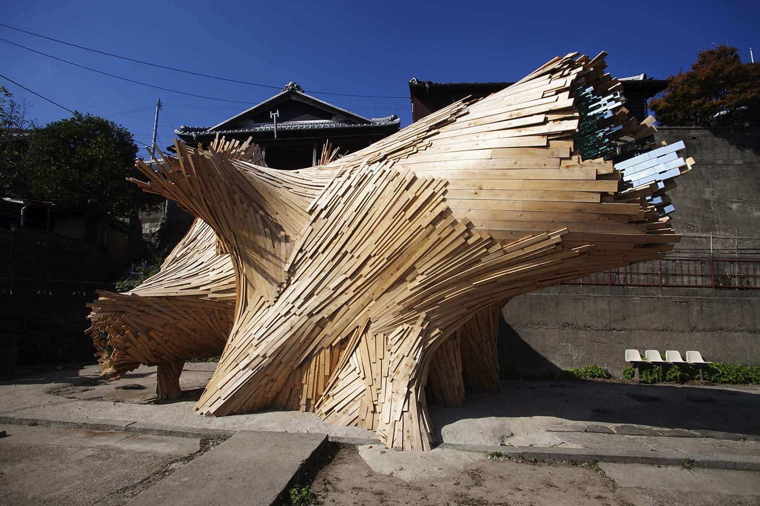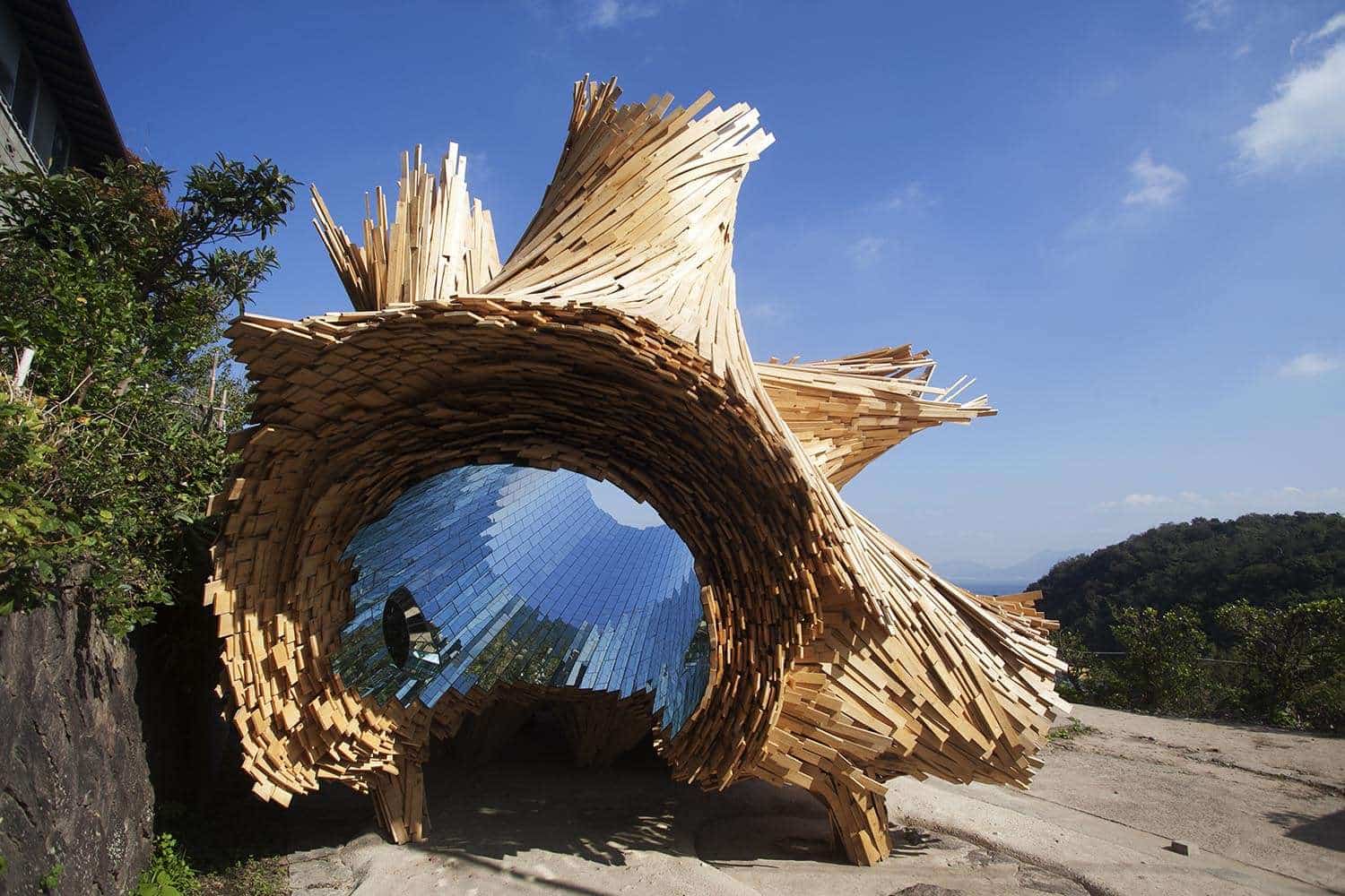 El japonés investiga oportunidades de atraer la vista hacia sitios inesperados, normalmente con un juego de espejos en forma de caleidoscopio. El hecho de que Kuribayashi erija estos túneles de espejo con aspecto de árbol tiene que ver con una línea de trabajo más larga que se extiende a otras obras como catalizador del reencuentro con nuestro entorno. En estos gestos, los árboles se utilizan como piezas arquetípicas. Un concepto tan abstracto como el paisaje cuando se materializa en un artefacto, en un objeto físico que es fácil de entender y reconocer.