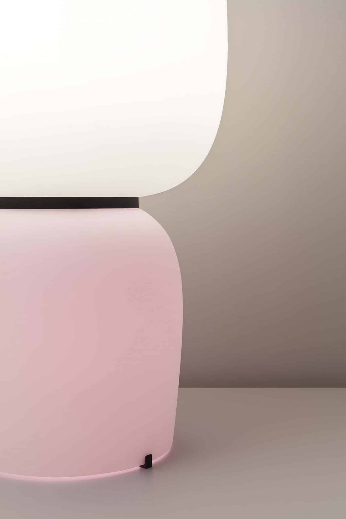 Ahondando en los mismos conceptos —y aunque desde una perspectiva formal diferente—, Ghost proporciona también este doble juego de una cosa discreta por su aspecto, pero con una impronta rotunda por sus formatos de vidrio gigante. En este caso, además, aporta algo espiritual, una apariencia misteriosa —de ahí el nombre—, como un halo de luz muy envolvente. Se podría decir que es la calidez personificada: crea atmósfera, te rodea y te abraza. Y, a la vez, es como una escultura tanto en su versión de mesa como suspendida.