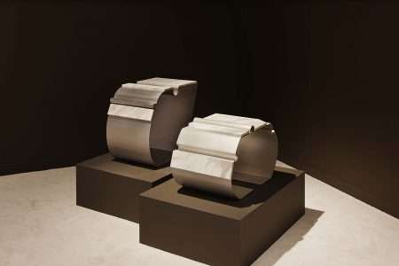 Todomuta Studio presentó la serie en la pasada edición de Design Miami. Massless lo constituyen nueve piezas en aluminio, acero inoxidable, piel y mármol. Esta serie reflexiona sobre la artesanía, sobre la levedad, sobre flotar en el aire de la forma menos congruente —y hasta contradictoria— y conseguirlo. La misma contradicción de ver despegar un enorme Airbus A380 con esa aparente facilidad que destila lo más complejo.