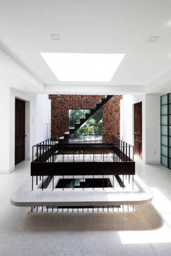 El dato de que el aire contenido en el interior de una vivienda está más polucionado que el del exterior, llevó al cliente a solicitar a CTA una casa ecológica “que respirase”. La respuesta de este equipo vietnamita de jovencísimos arquitectos —fundado en el año 2014— es una residencia en la que la sostenibilidad permite extraer las mejores cualidades, funcionales y estéticas del material empleado como órgano o membrana respiratoria: el ladrillo.